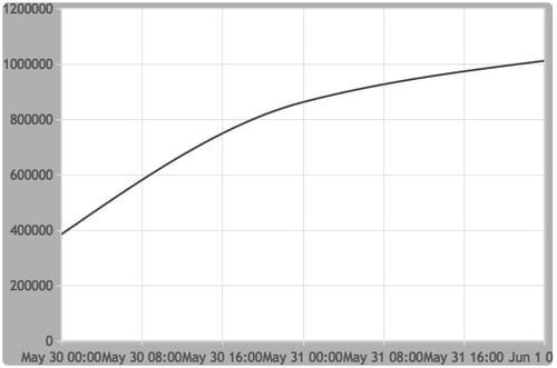 حيت انه في 24 ساعه الاخيره قام اكتر من مليون جهاز مصاب (1.091,024 unique IP addresses) بالاتصال ب sinkhole الخاص بنا كما يبين الرسم البياني التالي :